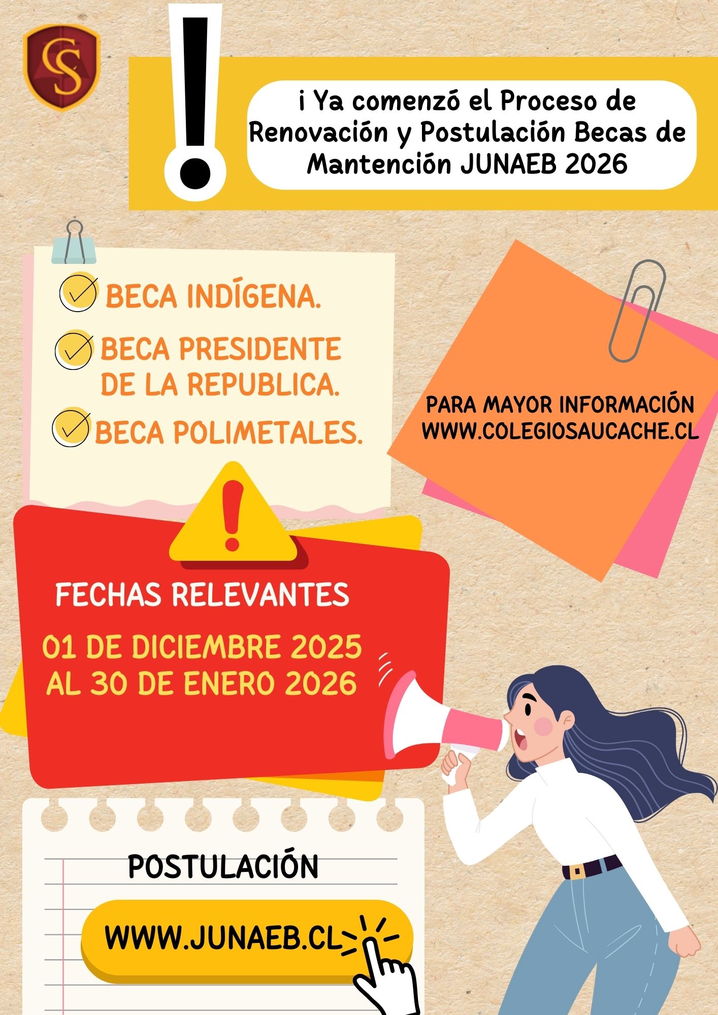 Se da inicio al proceso de Postulación y Renovación de Becas JUNAEB año 2026, el cual comienza el lunes 1 de